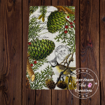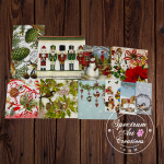 Featuring: Nutcrackers, Poinsettias, Snowflakes, Cardinals, Branches, Collage trees with nostalgic vintage images and printed stitching, Bells, Berries, Pine Branches, Ribbons, Cats, ornaments, mushrooms, gifts, farmhouse, Christmas, Peace on Earth and other texts, white wash wood, buck, Pinecones and more.
